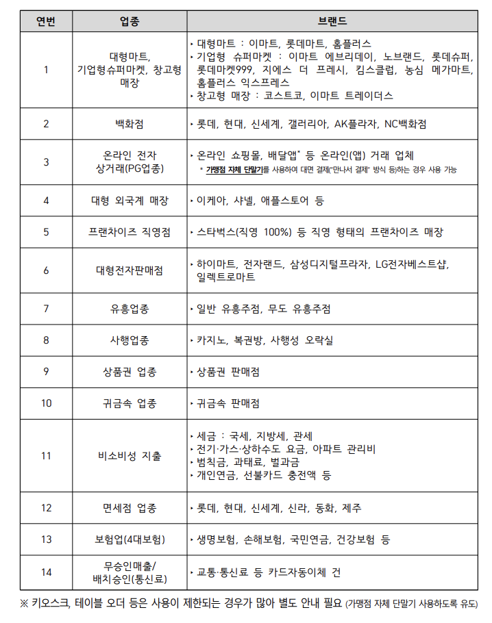 민생회복 소비쿠폰 사용 불가 업종 총정리